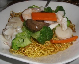 | We ordered a banquet that includes dishes like seafood chow mein and