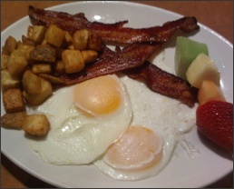 dining area and sat in a traditional booth. We both ordered homely fare - bacon and eggs